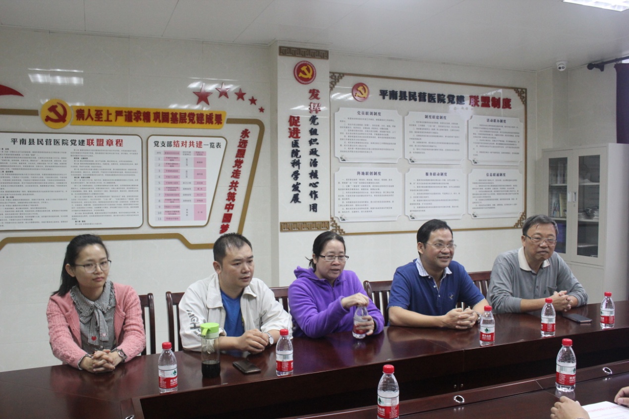 在授牌仪式后的交流会上,平南同安骨伤医院朱超平院长向市侨联代表们简述了我院自1999年创建以来,一直秉承“人道、博爱、奉献”的办院宗旨,热心社会公益事业的建设,近几年来在爱心帮扶义诊活动、名院名医建设等方面的工作情况,特别是在中医整脊和少林正骨技术传承和发扬方面取得的成果。