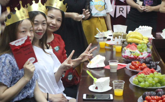 ▲员工分享蛋糕、美食