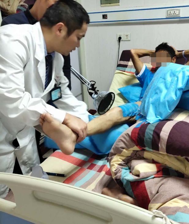 ▲张先生的手术非常成功,术后精神也不错,正在做术后的康复理疗